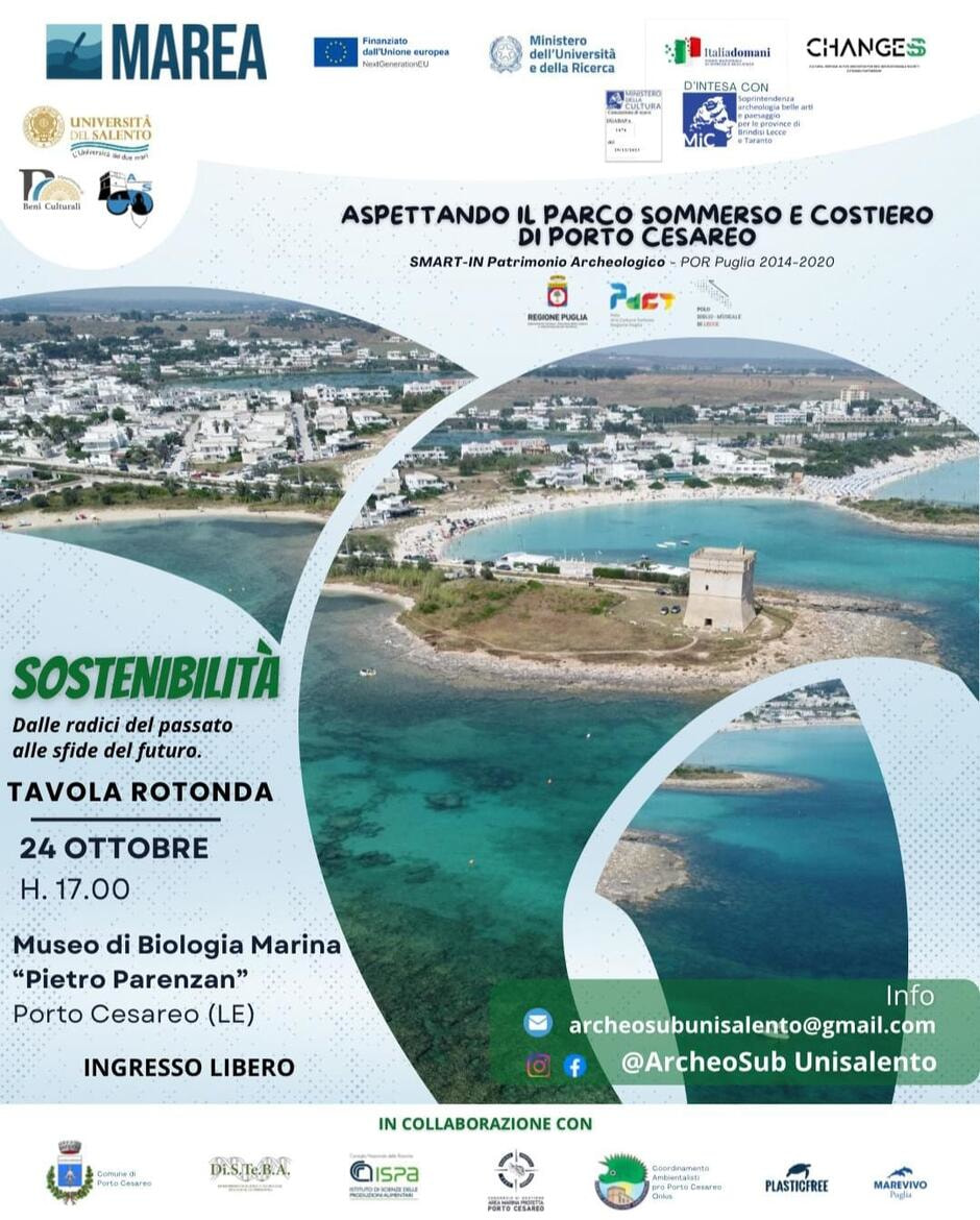 Giovedì 24 ottobre, alle ore 17:00, presso il Museo di Biologia Marina di Porto Cesareo, vivremo insieme una giornata speciale dedicata alla cultura, alla ricerca e alla valorizzazione del nostro territorio.Sarà l’occasione per partecipare alla tavola rotonda dal titolo “Sostenibilità: dalle radici del passato alle sfide del futuro”,un momento di dialogo e condivisione per raccontare e approfondire il grande progetto del Parco Archeologico Sommerso e Costiero di Porto Cesareo.Un sogno che diventa realtà: il più grande investimento culturale mai realizzato sul nostro territorio, frutto della sinergia tra il Comune di Porto Cesareo, il Dipartimento di Beni Culturali dell’Università del Salento e la Regione Puglia, nell’ambito del bando Smart-In per la valorizzazione delle aree archeologiche."Il Parco nasce da un lungo percorso di ricerca e tutela, reso possibile grazie al lavoro della prof.ssa Rita Auriemma e del suo gruppo di ricerca, alla Soprintendenza, all’Area Marina Protetta, al Coordinamento Ambientalisti pro Porto Cesareo – Centro di Educazione Ambientale, al Politecnico di Torino e a tutti coloro che, con passione e competenza, hanno contribuito a far emergere il nostro straordinario patrimonio sommersoCrediamo che la sostenibilità debba essere una pratica quotidiana — nella gestione del patrimonio, nel turismo, nell’educazione e nella partecipazione civica.Solo così potremo costruire insieme un futuro che abbia solide radici nel nostro passato", le parole della sindaca Silvia Tarantino