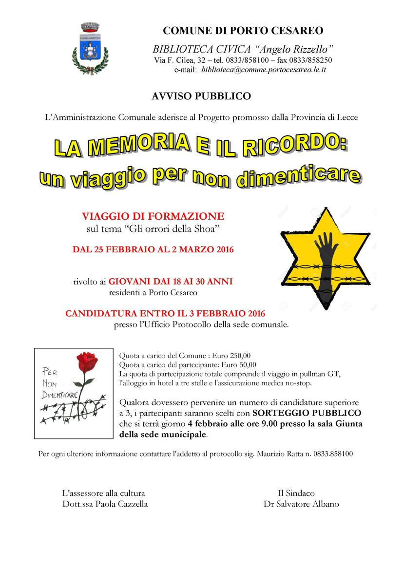 Descrizione L'Amministrazione Comunale Aderisce Al Progetto Promosso Dalla Provincia di Lecce..."La Memoria e Il Ricordo: Un Viaggio Per Non Dimenticare"