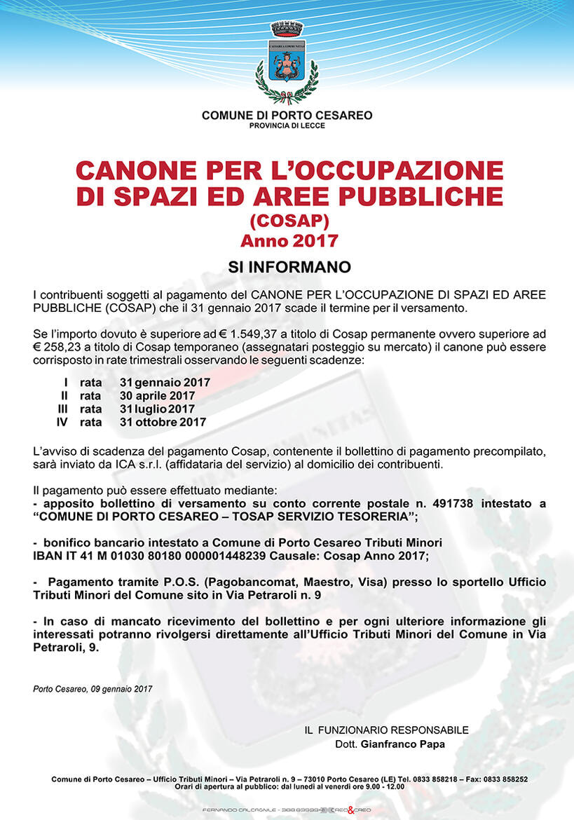 AVVISO SCADENZA COSAP 2017