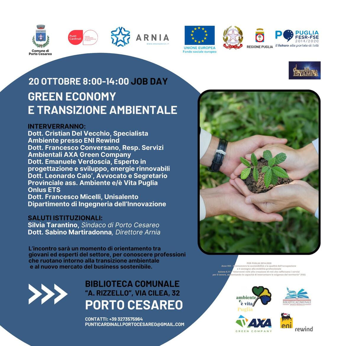 Vi aspettiamo venerdì 20 Ottobre dalle ore 9:30 presso la biblioteca comunale “A. Rizzello” per il job day “ Green Economy e transizione ambientale”. L’incontro sarà un momento di orientamento tra giovani ed esperti del settore, per conoscere professioni che ruotano intorno alla transizione ambientale e al nuovo mercato del business sostenibile.