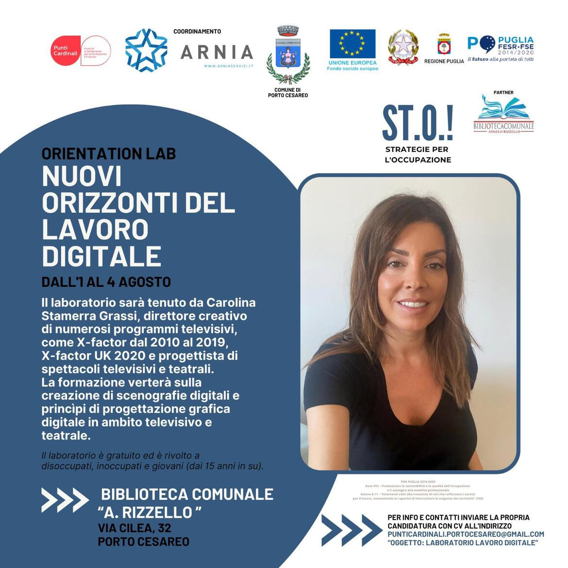 RELATORE: Carolina Stamerra Grassi Direttore Creativo. Laureata in Disegno Industriale al Politecnico di Milano nel 2006. Ha collaborato su progetti di ricerca con il Politecnico. Tra il 2007 e il 2009 ha vissuto a Londra. Ha curato la progettazione dell’immagine di programmi televisivi per Mc Graw Hill Companies, BBC, CNN, Standard&Poor, Aviation Week, Business week, Channel4, ITV, MTV, Mediaset, Rai, Sky. Direttore creativo di Xfactor Italia dal 2010 al 2019, Xfactor UK nel 2020. Progetta scenografie digitali per i maggiori broadcaster italiani. Dal 2015 inizia a progettare spettacoli televisivi, teatrali e tour musicali curando lo show in tutti i dettagli, dal racconto di ciò che accade sul palco, alla coreografia e alla grafica. Lavora per artisti come Mika (Love Letters to Paris, 2015, CasaMika 2016/2017, Revelation tour 2019/2020, Eurovision, Torino 2022