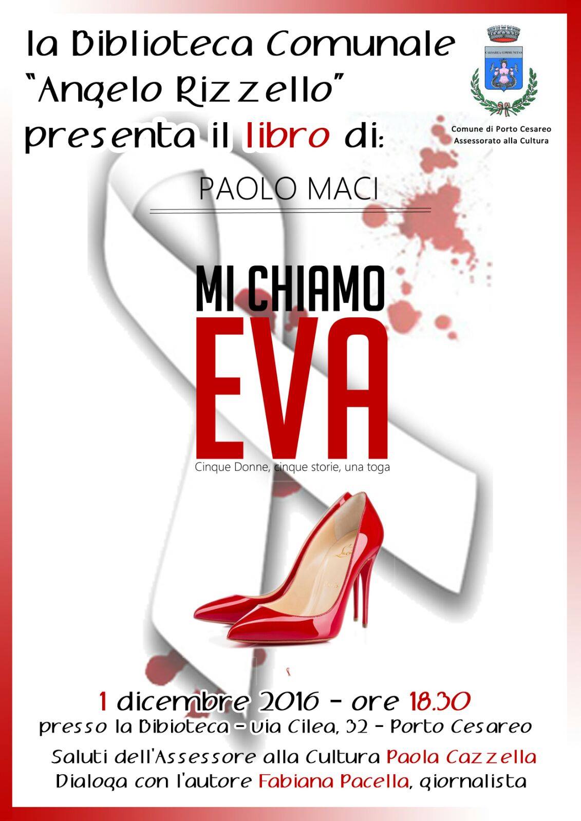 "MI CHIAMO EVA: CINQUE DONNE, CINQUE STORIE E UNA TOGA" Evento in biblioteca - 1 dicembre 2016 ore 18,30