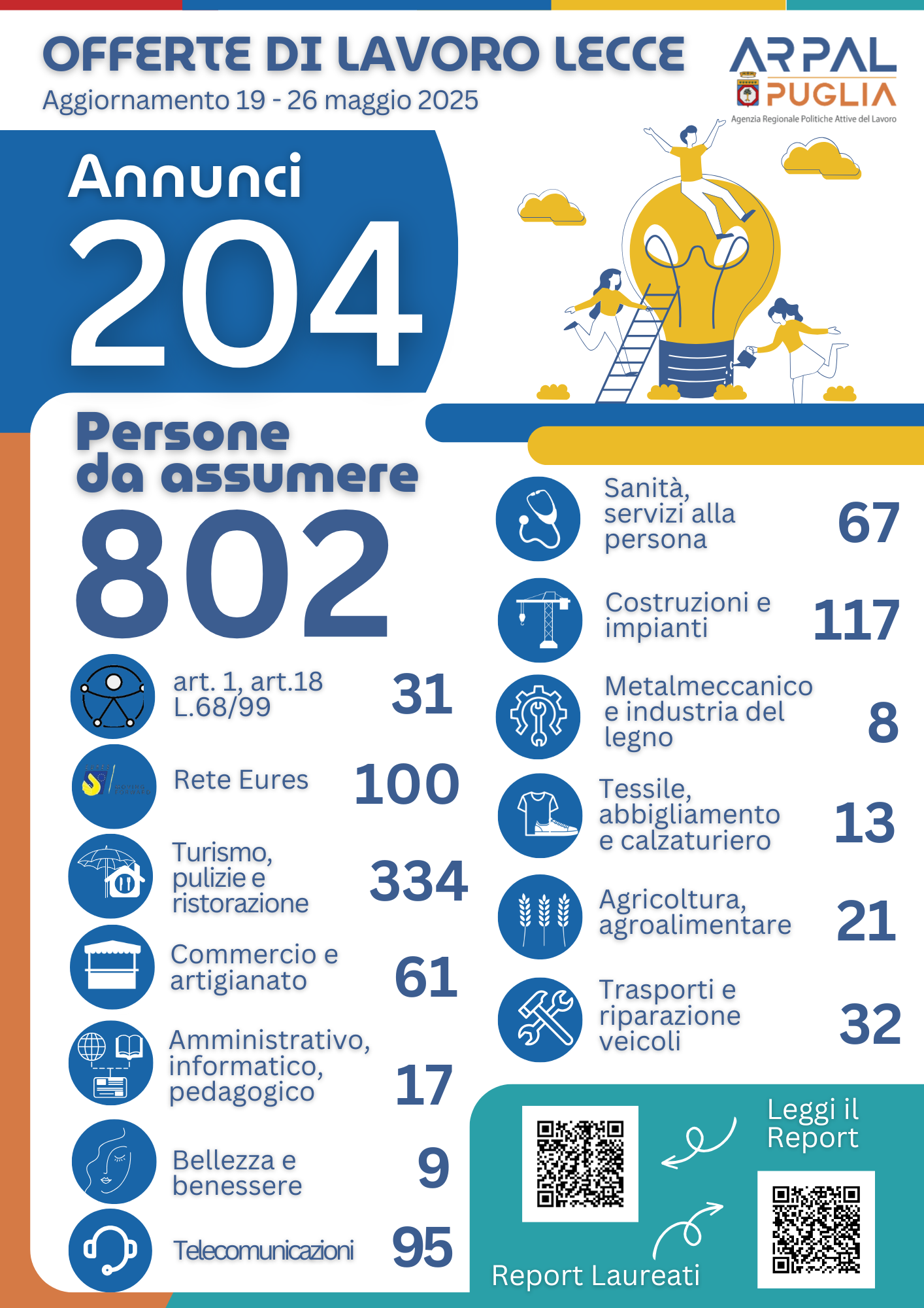 ARPAL Puglia - Offerte di Lavoro - Aggiornamento 19 - 26 maggio 2025