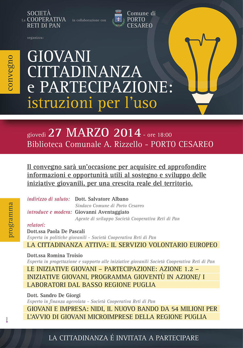 Porto Cesareo per la crescita. Giovedì 27 marzo 2014 un workshop su giovani cittadinanza e partecipazione
