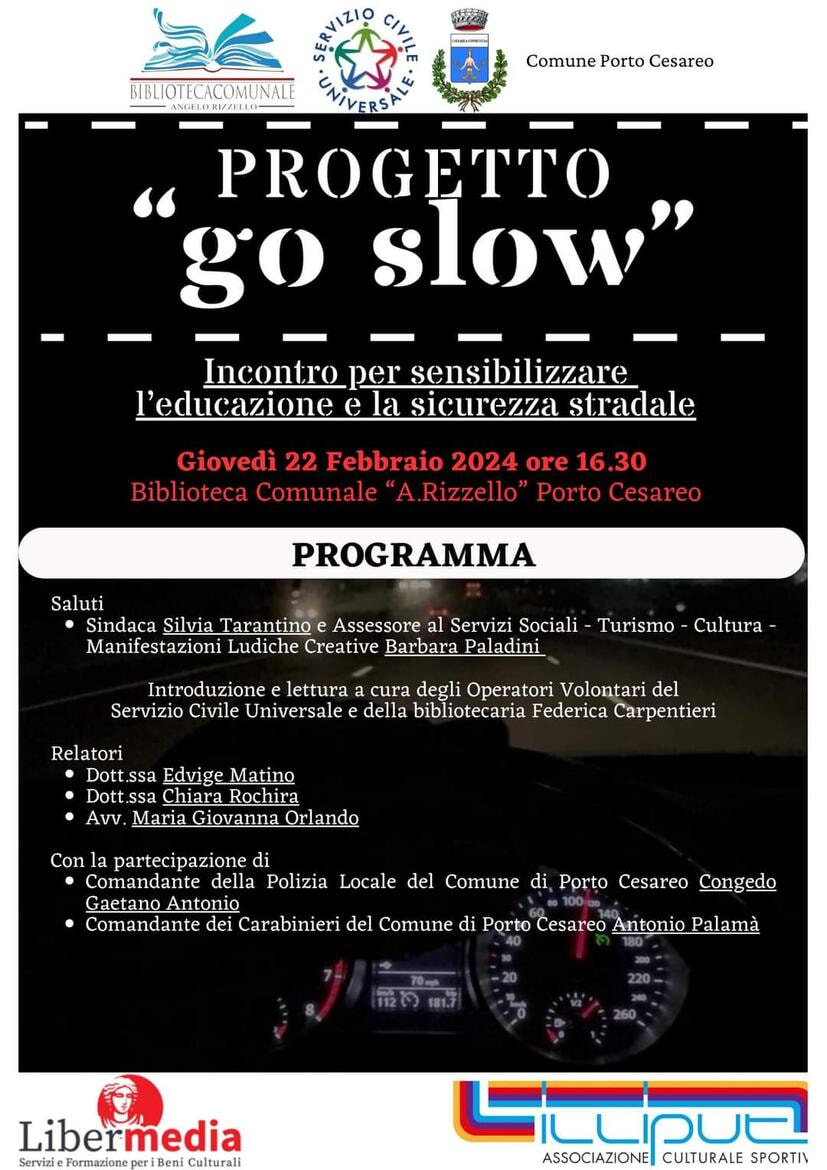 Descrizione incontro per sensibilizzare l'educazione e la sicurezza stradale Giovedì 22 Febbraio 2024 ore 16.30 presso Biblioteca "A. Rizzello " Porto Cesareo